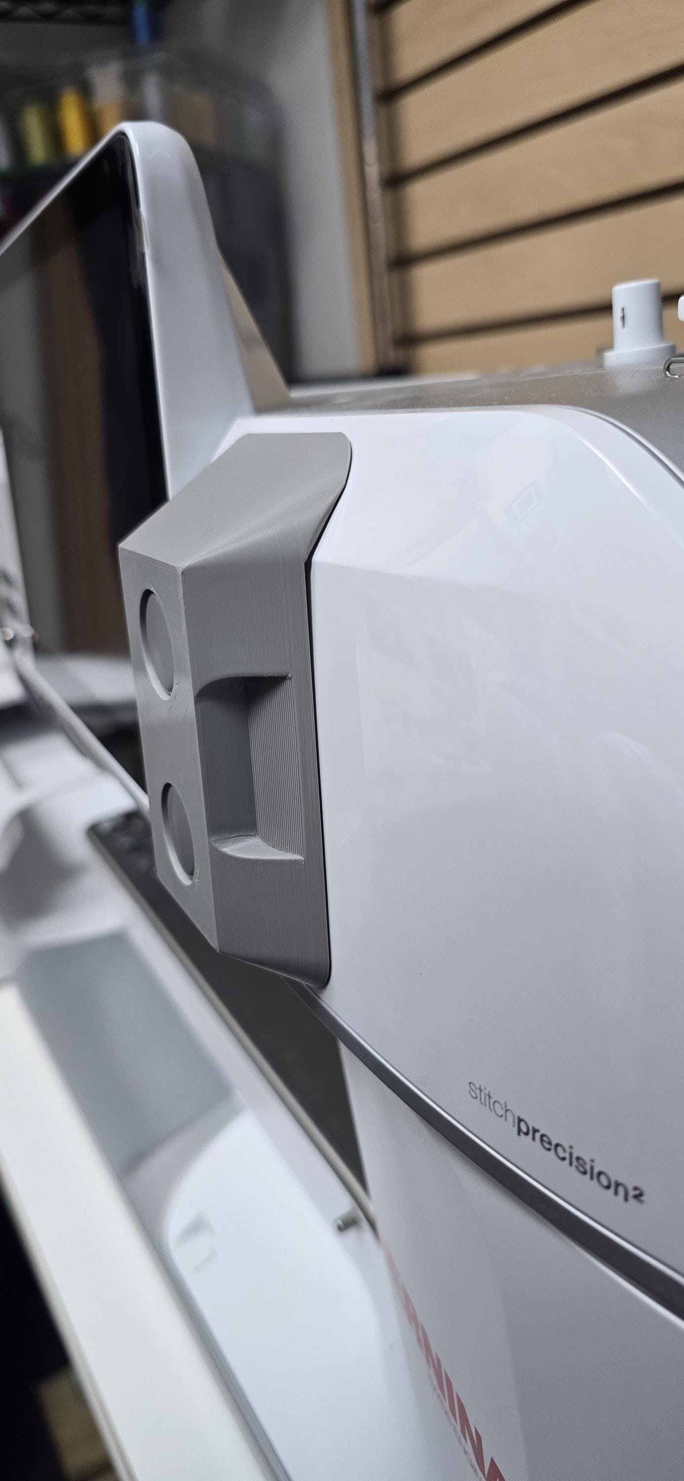 All of the parts in my shop are designed by me using CAD software and made to order in wide variety of colors using my own 3D printer. 3D printed parts may have lines or other visible surface features which are not defects, but are a normal part of the 3D printing process. Note that while these guards are designed to protect the knobs and bobbin winder, it is impossible to provide a guarantee that the knobs or bobbin winder won't be damaged in enough force is applied; thus, no warranty against damage to the machine when using these guards is provided.