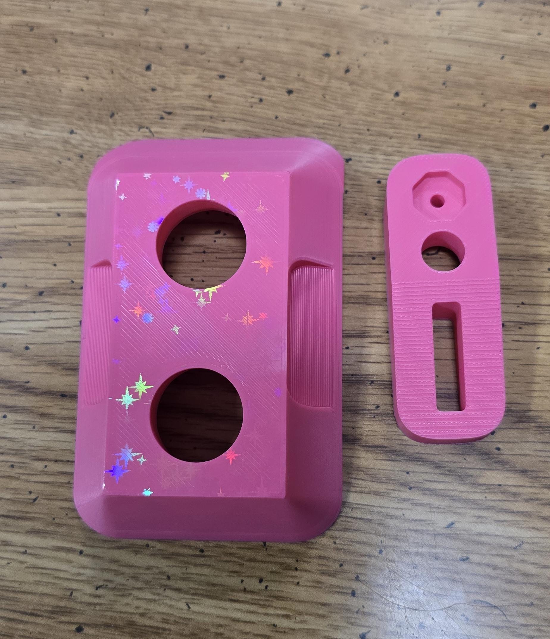 These protectors are available in 24 colors and the knob guard includes a starry 3D effect on the front can reflect light in different colors even though the guard is made of a single color of plastic, as shown in the video of a Hot Pink protector. Get a set of both the knob protector and bobbin winder protector to preserve your investment in your Bernina machine (although they are also available as individual units).