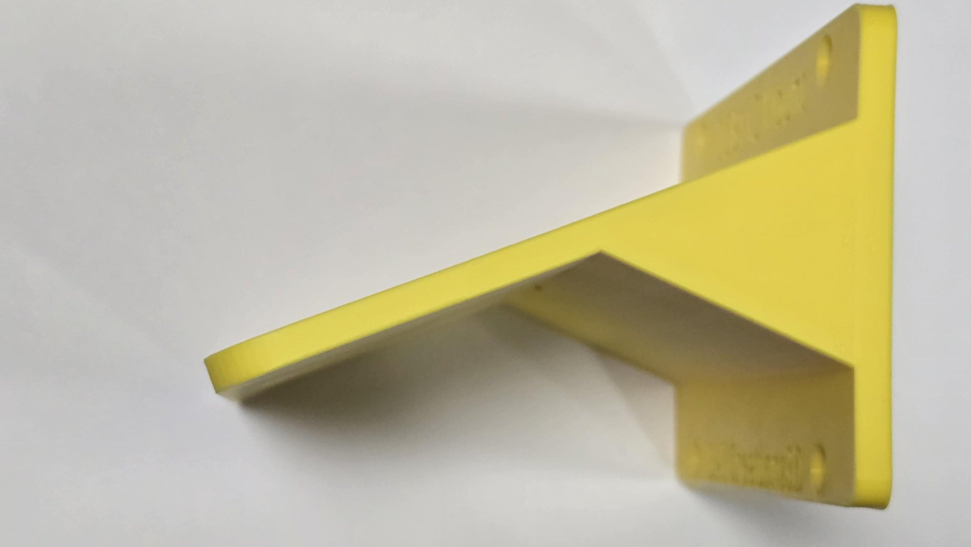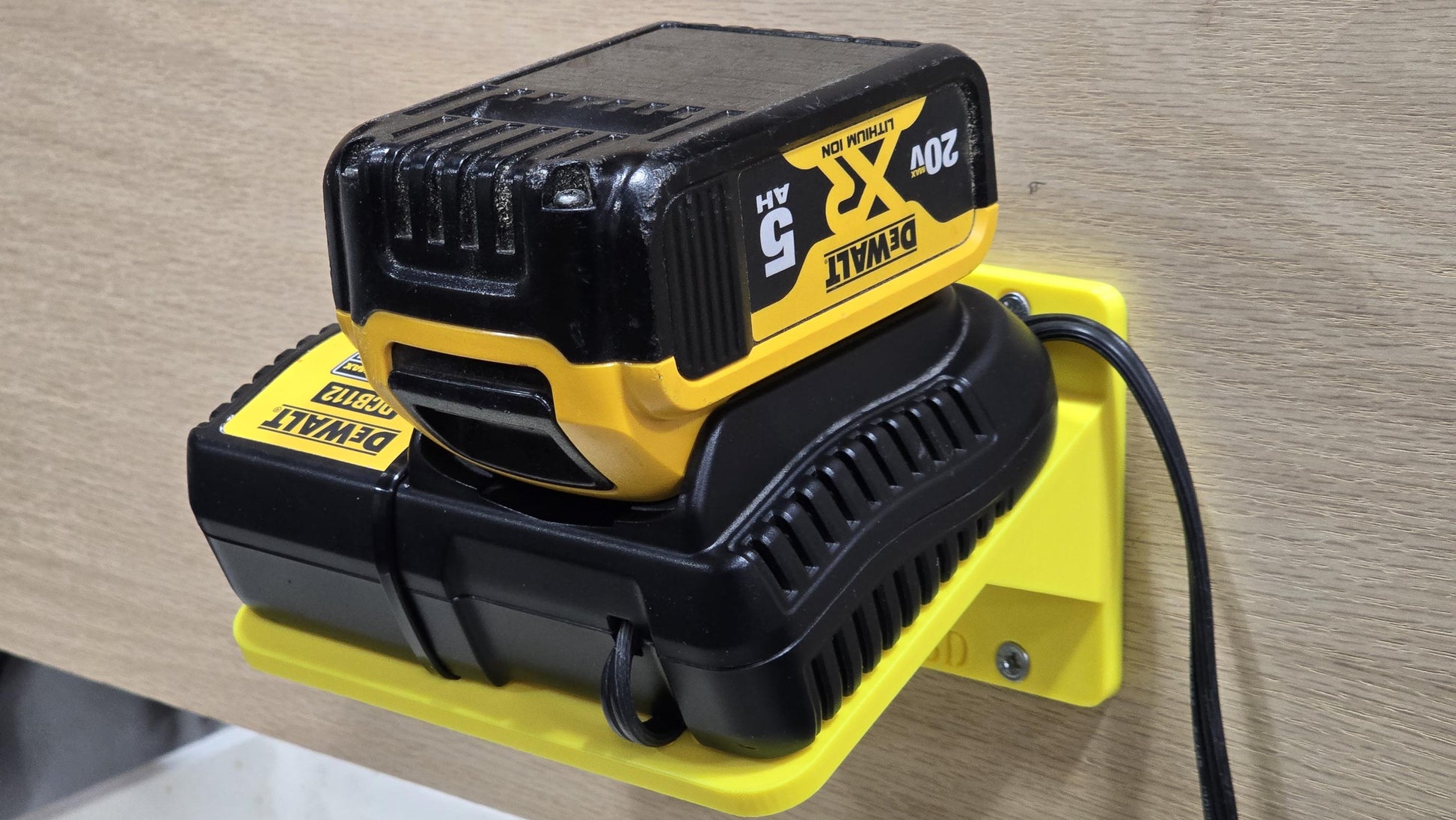 Creates a Shelf to hold your DeWalt DCB112 Charger with the battery approximately level and positioned to slide the battery in and out from the front. Available in Black or Yellow. Comes with 4 mounting screws and a zip-tie to hold the charger in place. It is optional to use the zip-tie but the mount includes a path to position it in the proper place for the charger and hides the head of the zip-tie for a clean appearance. If you decide not to use the zip-tie, you will probably need to use 2 hands to remove the battery from the charger. Using the zip-tie allows single-handed insertion and removal of the battery from the charger.